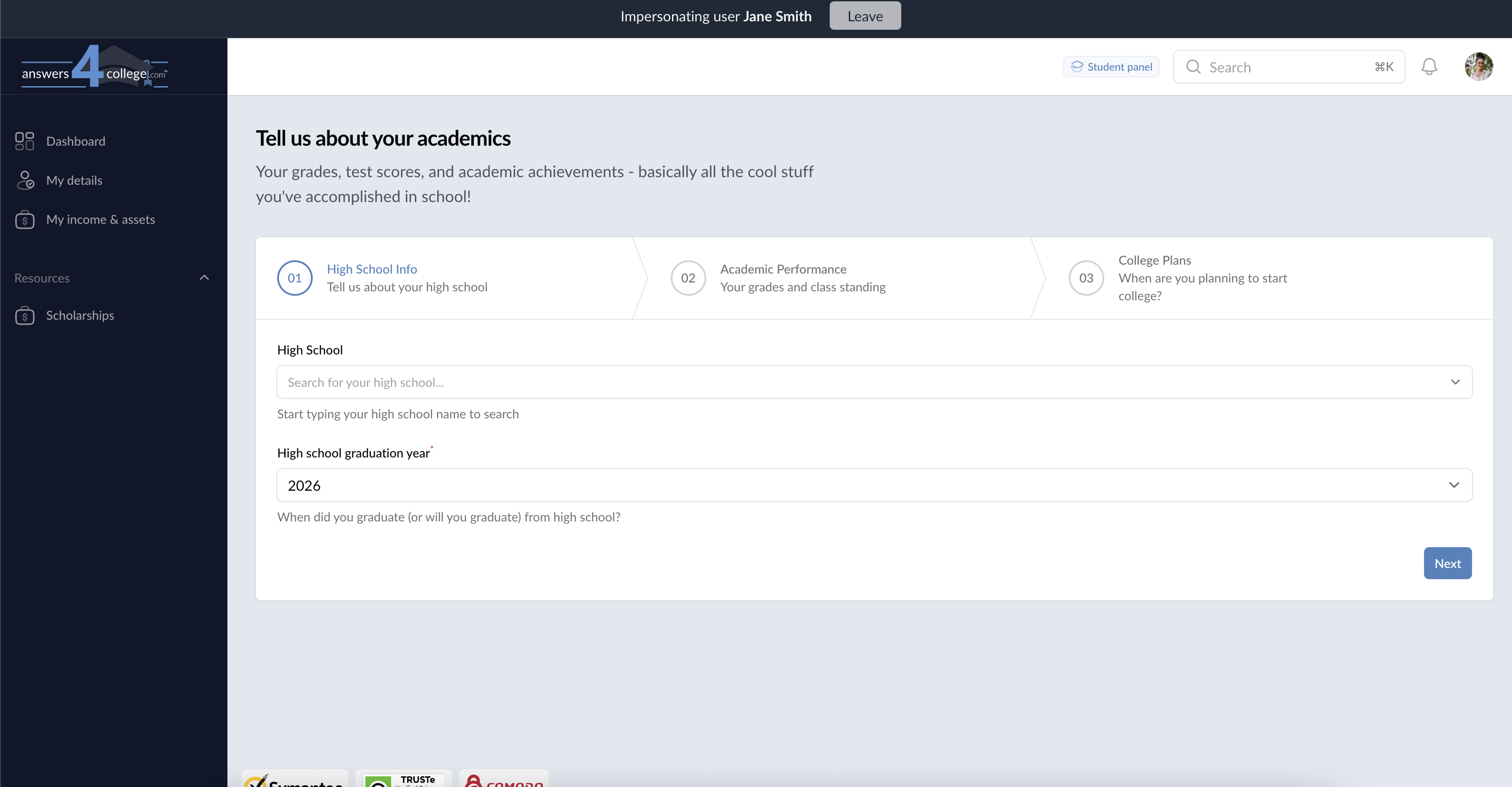 Student Impersonation Feature