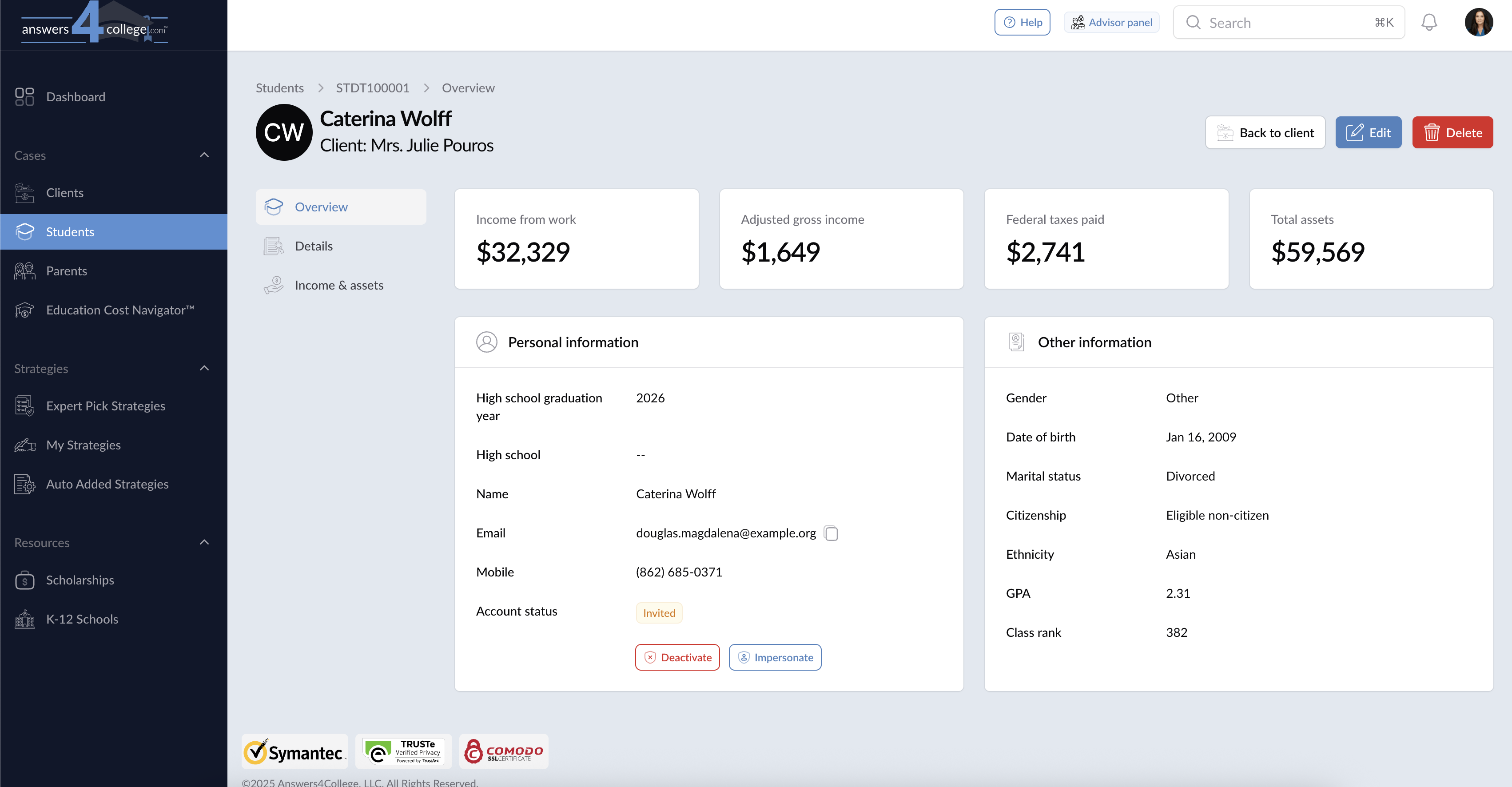 - Financial Privacy: Students cannot access any parent/family financial details
